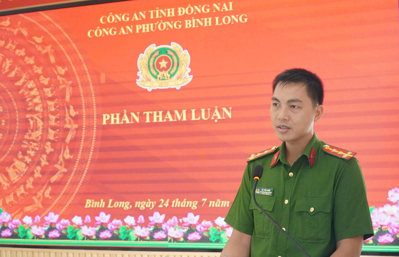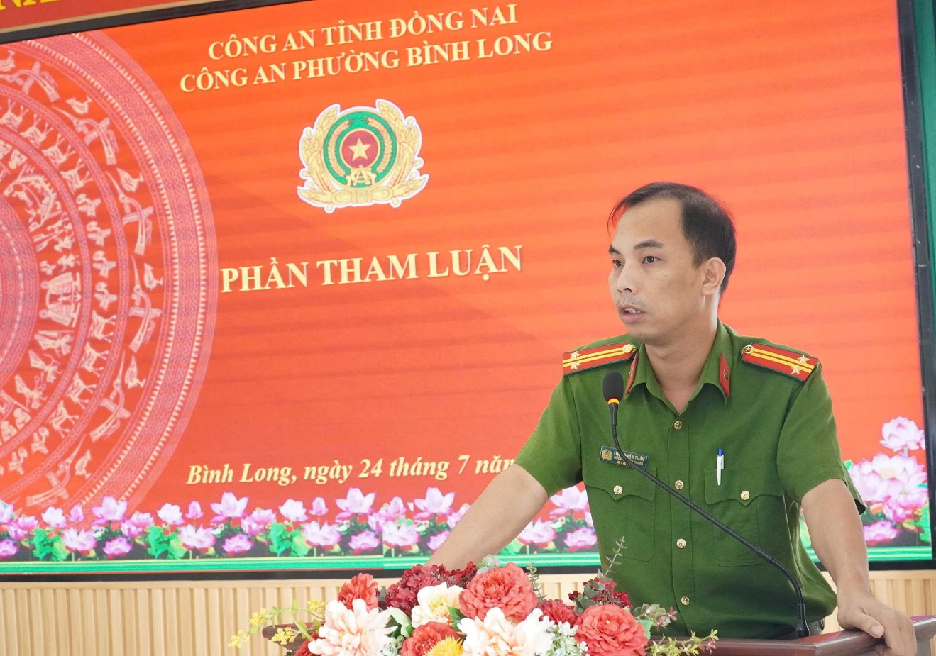 Sáng ngày 24-7, Công an phường Bình Long, tỉnh Đồng Nai tổ chức hội nghị sơ kết công tác 06 tháng đầu năm, triển khai phương hướng, nhiệm vụ trọng tâm 06 tháng cuối năm 2025. Thượng tá Nguyễn Hoài Thanh, Trưởng Công an phường chủ trì hội nghị.Dự và chỉ đạo hội nghị có Phó bí thư Đảng ủy, Chủ tịch UBND phường Đặng Hoàng Thái.