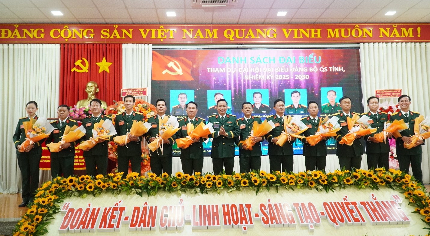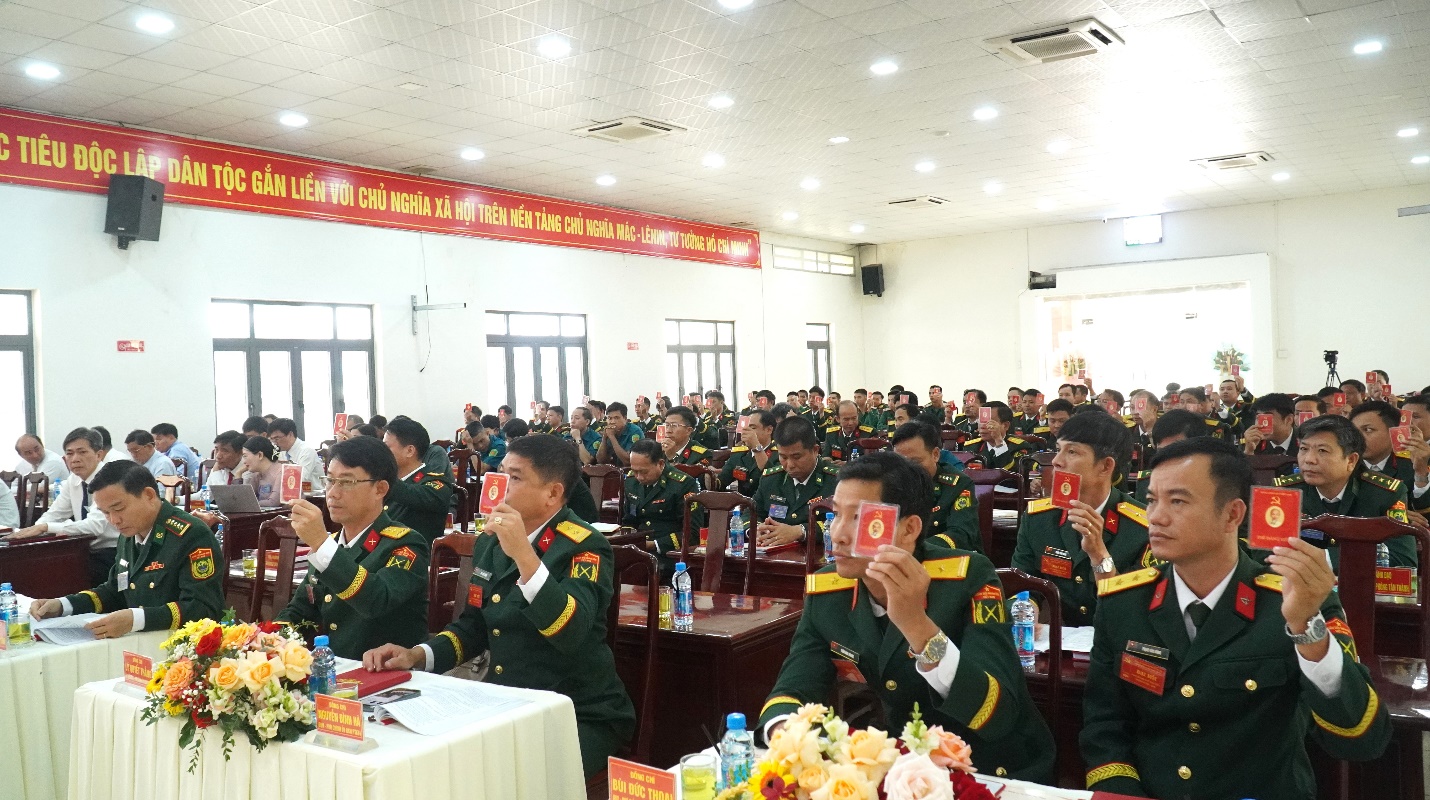 Các đại biểu biểu quyết thông qua các Nghị quyết tại đại hội Lãnh đạo Bộ chỉ huy quân sự tỉnh tặng hoa 15 ủy viên BCH đảng bộ nhiệm kỳ 2025 – 2030 Bí thư đảng ủy Nguyễn Minh Tứ phát biểu nhận nhiệm vụ Ủy ban kiểm tra Đảng ủy ra mắt trước đại hội Đoàn đại biểu đi dự đại hội cấp trên ra mắt trước đại hội
