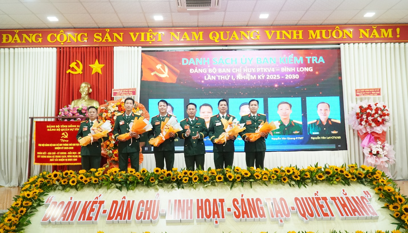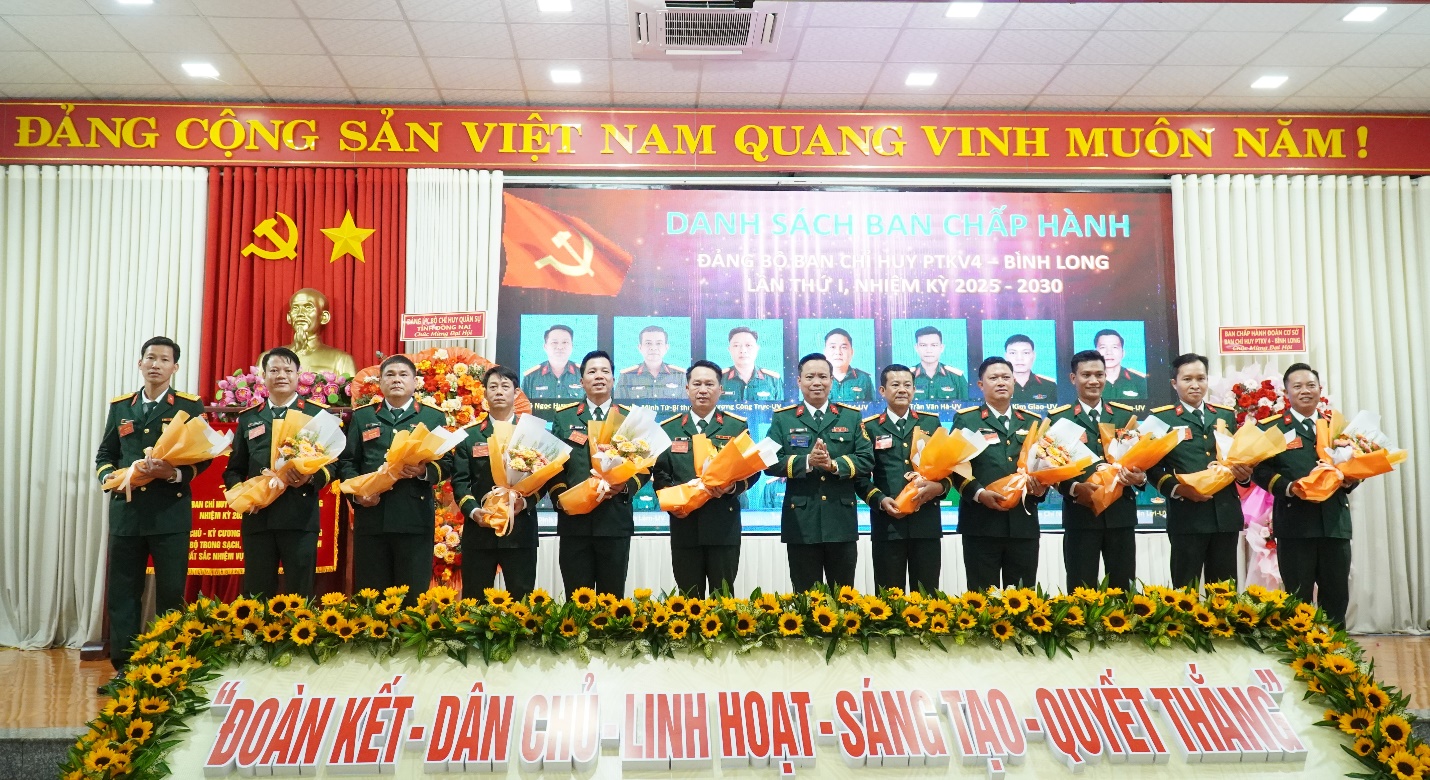 Tại đại hội, các đại biểu đã thảo luận thông qua phương hướng, mục tiêu, nhiệm vụ và giải pháp lãnh đạo trong nhiệm kỳ 2025 – 2030 với 11 chỉ tiêu chủ yếu và 03 khâu đột phá. Các đại biểu cũng thảo luận đóng góp ý kiến, góp ý vào Văn kiện Đại hội đảng toàn quốc lần thứ XIV, và Dự thảo báo cáo chính trị của Ban chấp hành Đảng bộ quân sự tỉnh, nhiệm kỳ 2025 – 2030. Đại hội cũng đã công bố các quyết định của Ban Thường vụ Tỉnh uỷ và của Ban Thường vụ Đảng uỷ Quân sự tỉnh về chỉ định Ban chấp hành Đảng uỷ, Ban thường vụ và các chức danh Bí thư, Phó bí thư, Uỷ Ban kiểm tra Đảng uỷ, Chủ nhiệm Uỷ ban kiểm tra Đảng uỷ và đại biểu đi dự Đại hội đại biểu Đảng bộ Quân sự tỉnh, nhiệm kỳ 2025 – 2030. Theo đó, Ban chấp hành Đảng uỷ Ban chỉ huy PTKV4 – Bình Long gồm 15 đồng chí, Ban thường vụ gồm 05 chí, Thượng tá Nguyễn Minh Tứ - Chính uỷ Ban chỉ huy PTKV4 được chỉ định giữ chức vụ Bí thư Đảng uỷ. Uỷ Ban kiểm tra đảng uỷ gồm 05 uỷ viên, Thượng tá Lý Quyết Thắng, Phó chính uỷ được chỉ định giữ chức vụ Chủ nhiệm Uỷ ban kiểm tra Đảng ủy; Chỉ định 16 bí thư đảng uỷ các xã, phường trong khu vực tham gia sinh hoạt trong Ban chấp hành; chỉ định 11 đại biểu đi dự Đại hội đại biểu Đảng bộ Quân sự tỉnh, nhiệm kỳ 2025 – 2030, trong đó có 01 đại biểu dự khuyết.