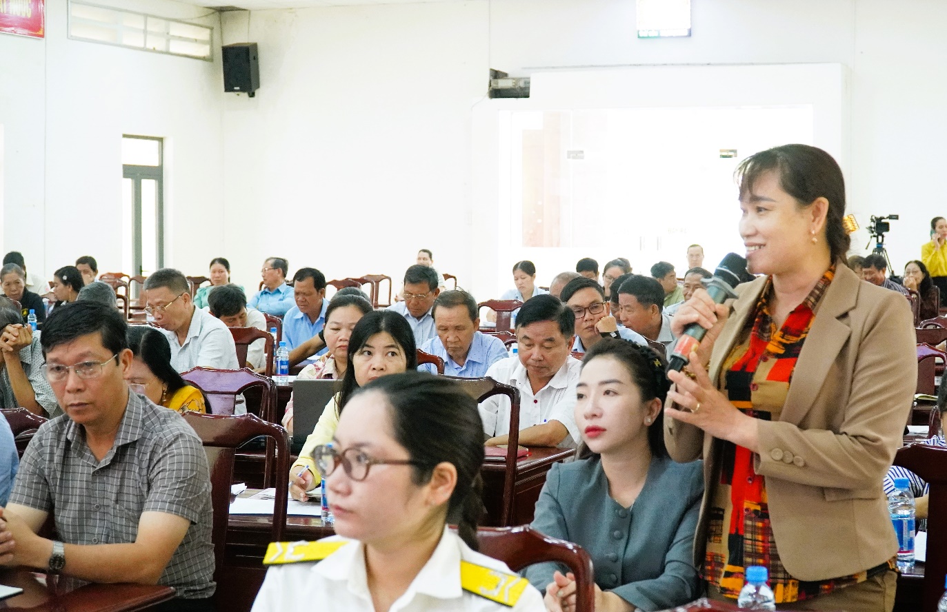 Đại diện các khu phố, ấp và trường học nêu ý kiến tại hội nghị |