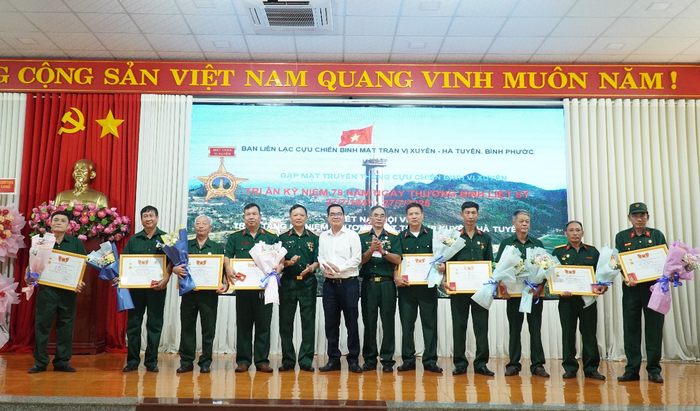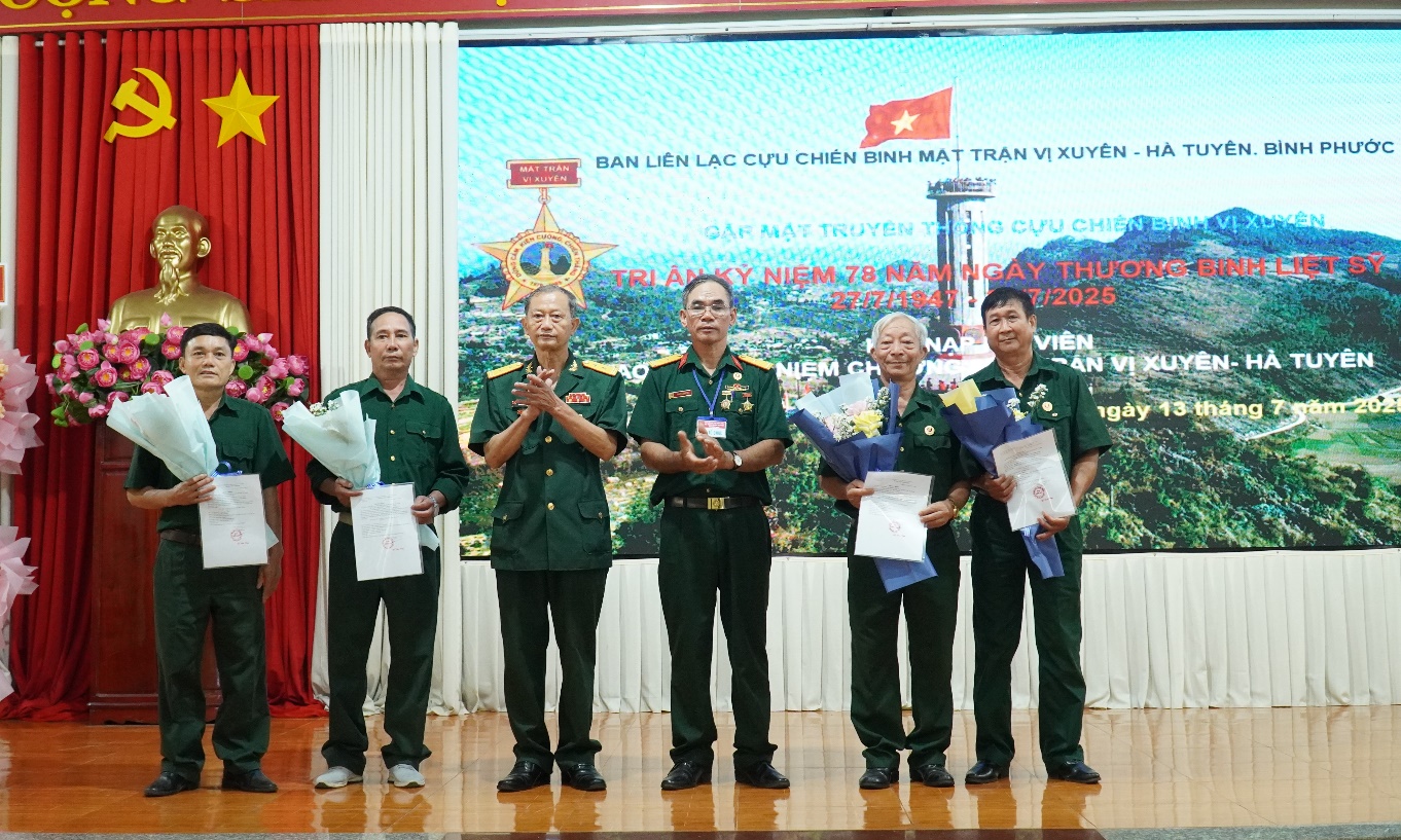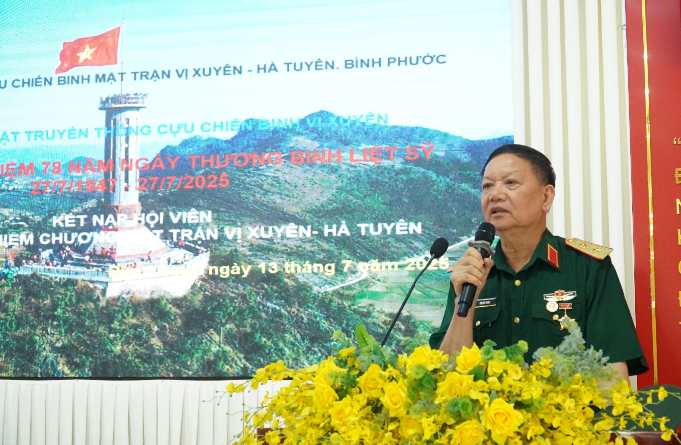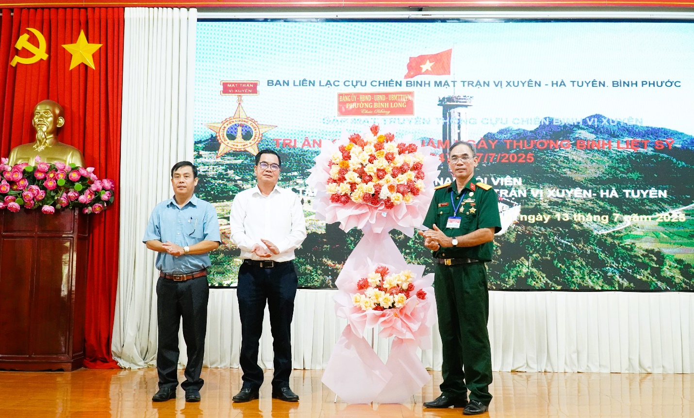 Sáng ngày 13-7, tại phường Bình Long, Tỉnh Đồng Nai, Ban Liên lạc Hội Cựu chiến binh mặt trận Vị Xuyên – Hà Tuyên (Bình Phước cũ) tổ chức chương trình gặp mặt truyền thống cựu chiến binh Vị Xuyên nhân Kỷ niệm 78 năm ngày thương binh liệt sỹ (27/7/1947 - 27/7/2025); tri ân gia đình thương binh, liệt sỹ trong ban liên lạc. Đồng thời kết nạp hội viên mới năm 2025 và trao tặng kỷ niệm chương cho các đồng chí Cựu chiến binh Mặt trận Vị Xuyên – Hà Tiên (CB MTVX-HT) đợt 2025.