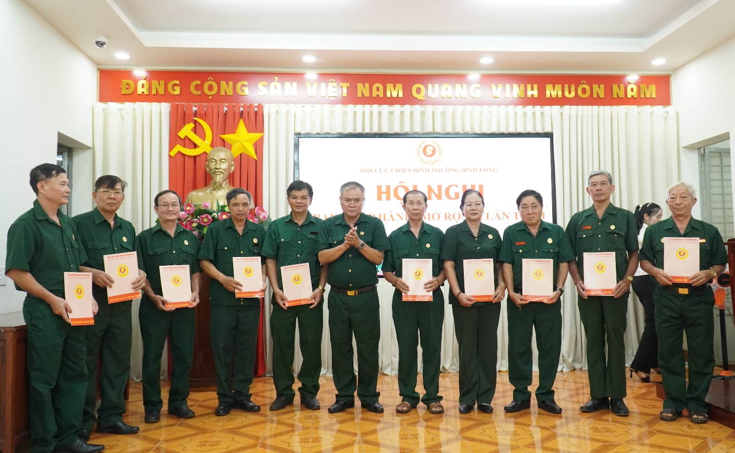 Trao quyết định Ban chấp hành hội CCB phường Bình Long Trao quyết định cho các Chi hội trưởng Hội CCB các khu phố